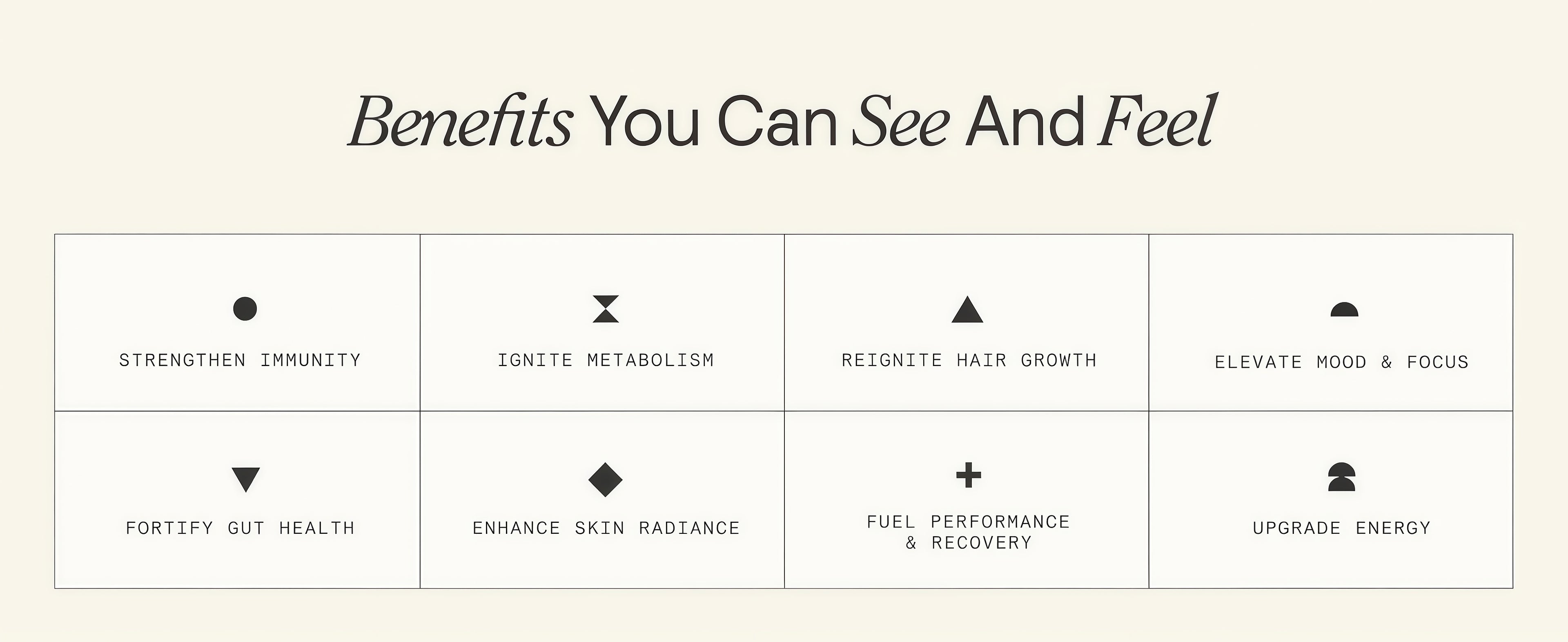 ARMRA strengthens immunity, supports gut health, enhances skin and hair, boosts energy, sharpens focus, and speeds recovery — all from the power of over 400 bioactive nutrients.